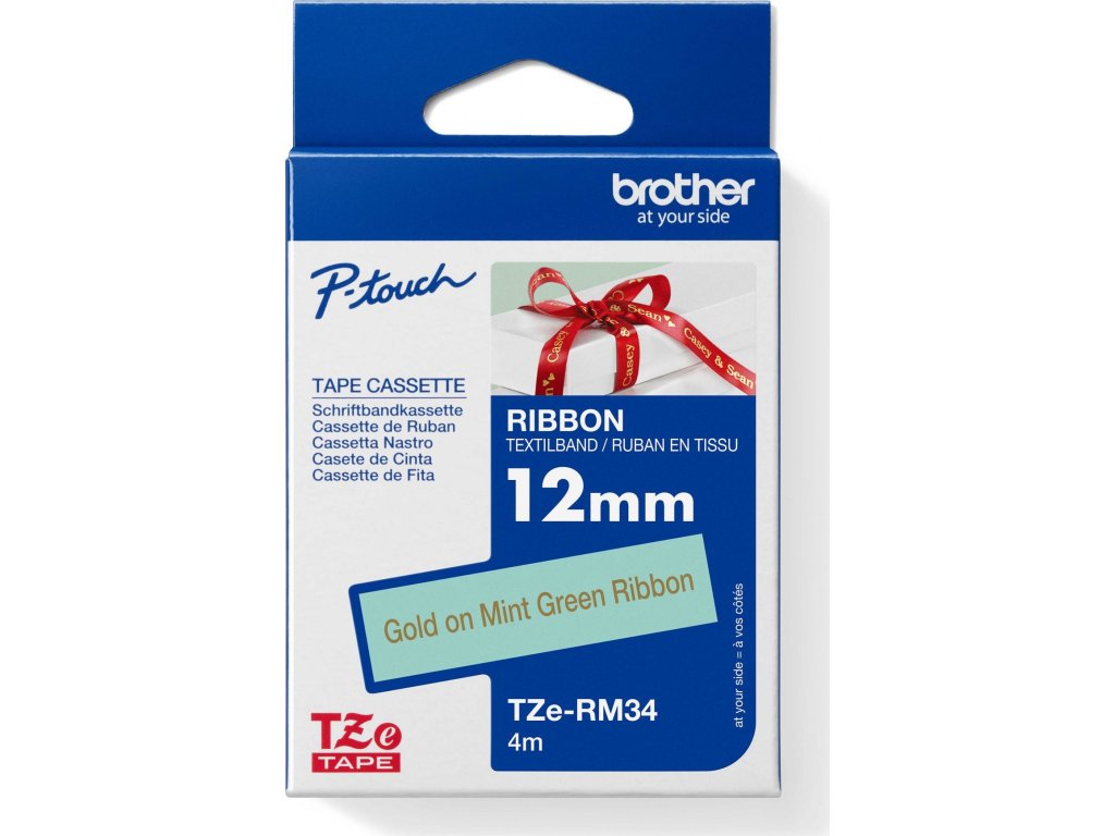 Originální pásková kazeta Brother TZe-RM34 - zlatý tisk na mátové, šířka 12 mm