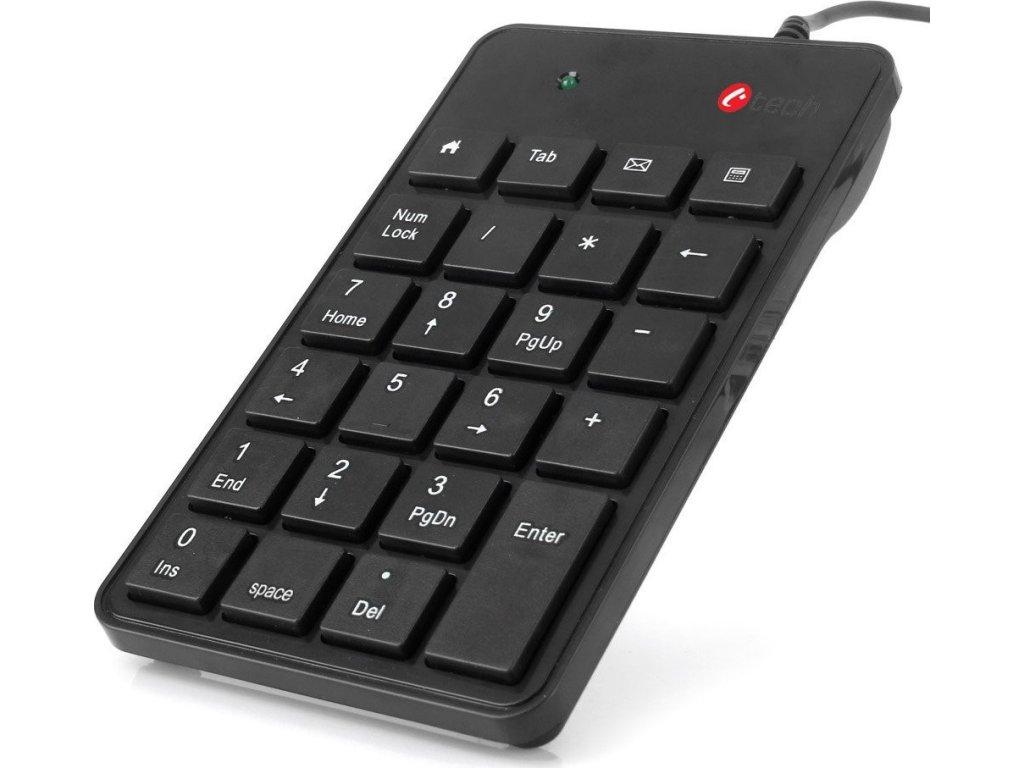 USB numerická klávesnice s 23 klávesami včetně 4 kancelářských: Home, tab, email a kalkulačka.
