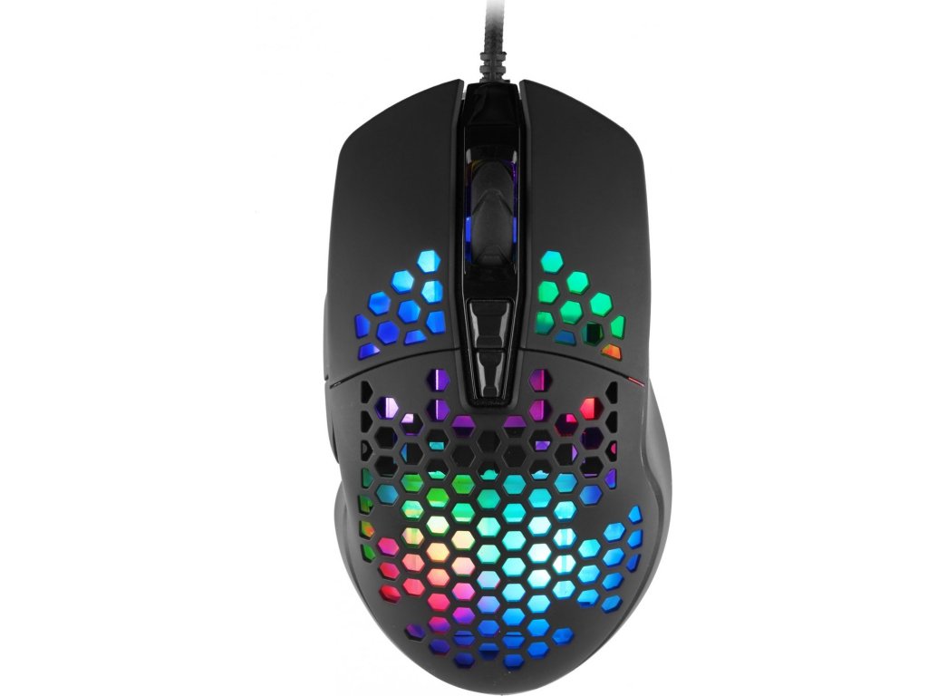 Herní myš C-TECH Scarab Vás na první pohled okouzlí svým elegantním tvarem a RGB podsvětlením. Myš disponuje optickým snímačem Instant 725F s maximálním rozlišením 7200DPI, které je možno pomocí tlačítka DPI měnit v 6 úrovních. Každá úroveň je při přepnutí signalizována 1s barevnou indikací. Myš je vybavena 5 tlačítky, které vám poskytnou dokonalou kontrolu nad hrou. Další dvě tlačítka jsou pro změnu DPI a volbu RGB režimu podsvětlení. 4 RGB módy s 16.8 miliony barev oživí váš stůl nejen při hraní her, ale i při kancelářské práci. Pohodlný úchop zajišťuje pogumovaný povrch horní části. Myš C-tech Scarab je díky své ergonomii vhodná pro praváky a k počítači ji připojíte 1,5m opleteným kabelem s USB konektorem.