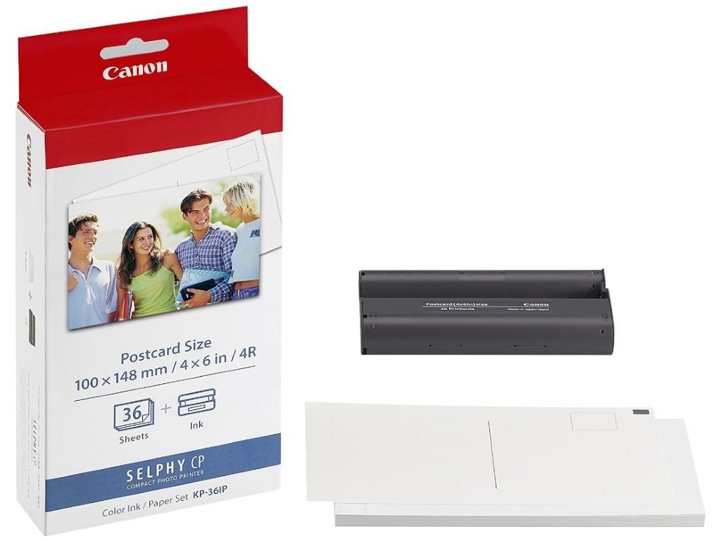 Canon KP-36IPSada pro tisk fotografií ve formátu 10 × 15 cm na termosublimačních tiskárnách Canon. Balení obsahuje materiál na vytvoření 36 fotografií. Produkuje vysoce kvalitní voděodolné fotografie s garancí až 100 let bez blednutí. Technologie tepelné sublimace zaručuje nádherné barvy.