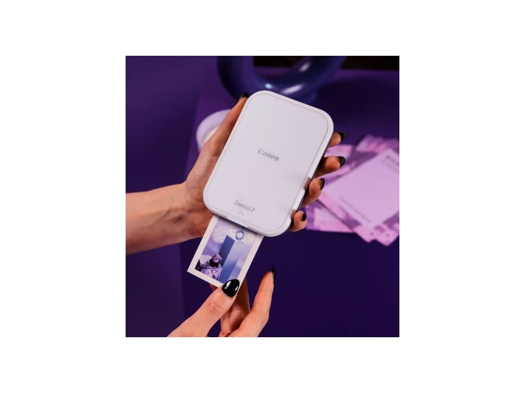 Model Canon Zoemini 2 je dobíjecí fototiskárna, která je vždy s vámi, když ji potřebujete. Nepoužívá inkoust a je tak malá, že se vám vejde do kapsy. Pořiďte a přizpůsobte si fotografie na svém mobilním zařízení a poté během chvilky získejte samolepicí výtisky, které můžete sdílet se svými přáteli a rodinou.