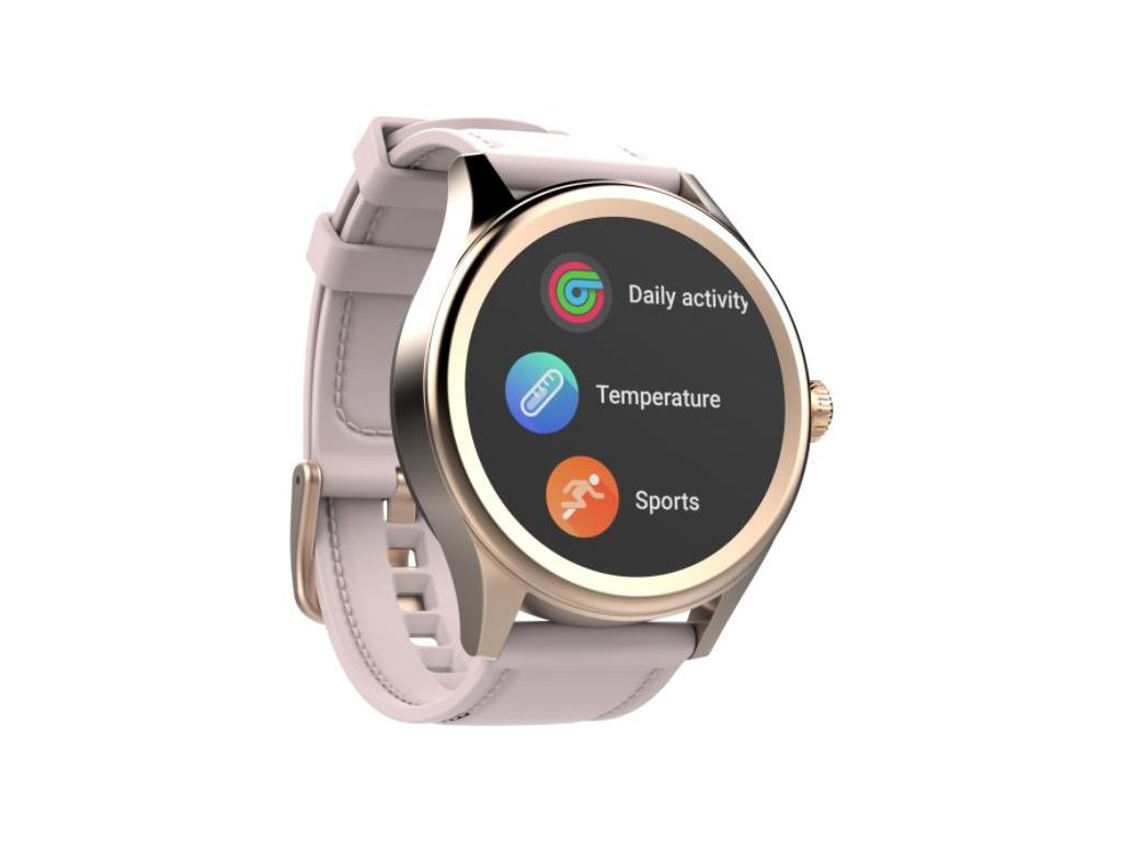 Smart hodinky Carneo Prime GTR v elegantním zlatém provedení, barevným dotykovým displejem lze aktivovat jednoduchým otočením ruky. Kromě běžných "smart" funkcí disponují i ??fitness sportovními funkcemi a to vše v elegantním business look provedení. Rosegold silikonový řemínek v designu koženého pásku s prošíváním umocňuje jejich eleganci.