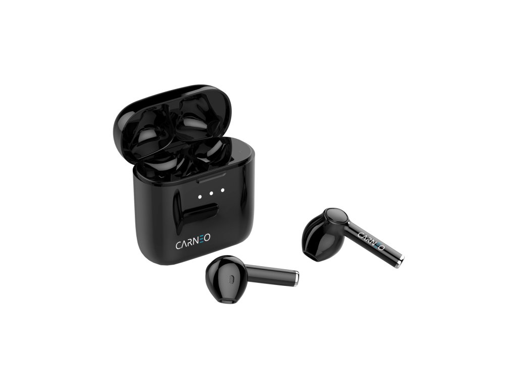 CARNEO Bluetooth sluchátka do uší S8 černé. CARNEO S8 jsou vždy ve výborné formě díky jejich okamžitému nastavení. Stačí je jen vytáhnout z dokovací stanice, zapnout, spárovat s telefonem a zábava může začít. Sluchátka vám se svou akustickou soustavou se dvěma budiči poskytnou opravdu kvalitní, čistý, autentický a dynamický zvuk s čitelnými výškami a pevně usazenými basy.
