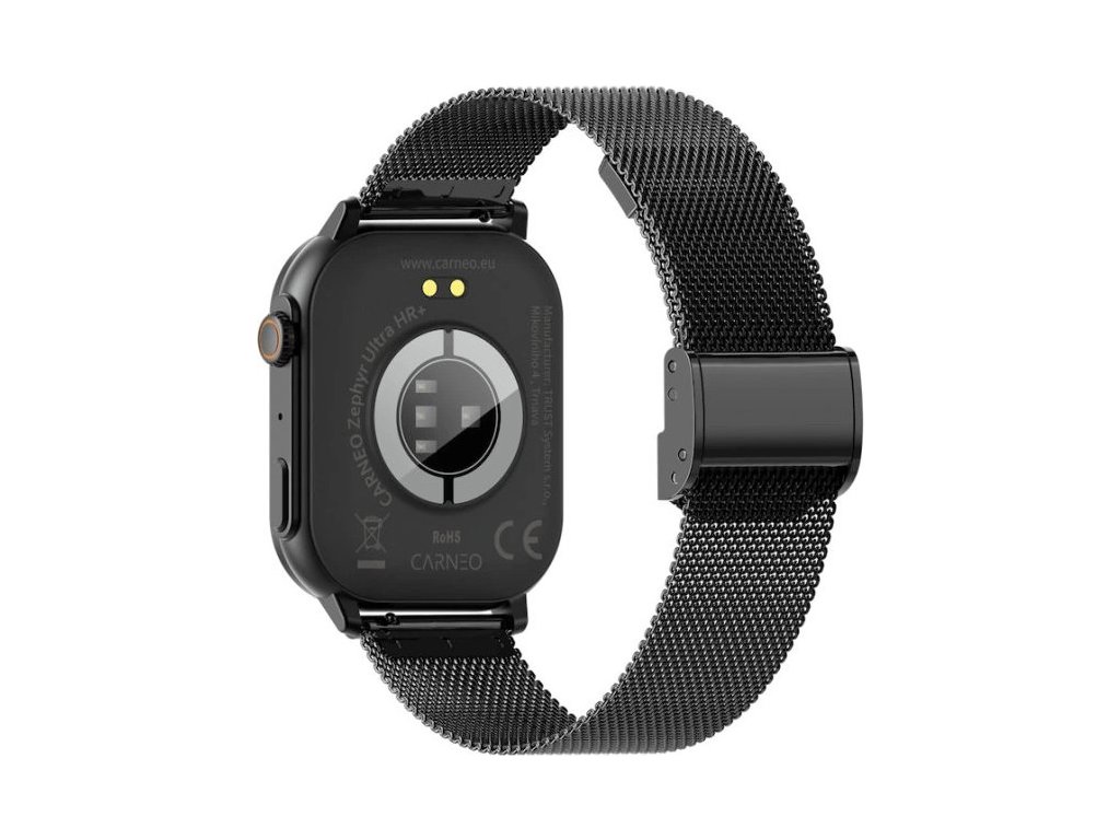Moderní, designově propracované fitness hodinky CARNEO Zephyr Ultra HR+ v černé barvě s černým, kovovým, pleteným řemínkem a barevným SUPER AMOLED displejem s vysokým jasem a funkcí trvalého zobrazení času. Monitorují vaši denní aktivitu, úroveň stresu a lze je spárovat s mobilním telefonem díky čemuž Vás upozorní na příchozí hovor nebo SMS. Hodinky umožňují telefonovat, aniž byste museli telefon vyndat z tašky, díky vestavěnému mikrofonu a reproduktoru až do vzdálenosti 10 m od telefonu. Jejich bezchybné kovové tělo s nadčasovými outdoorovými křivkami je tak návykové, že je po prvním nošení nebudete chtít sundat ze zápěstí. Tvrzené minerální sklo ochrání jejich křišťálově čistou obrazovku před poškrábáním.