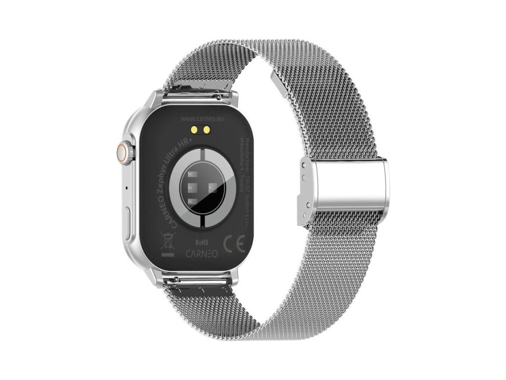 Moderní, designově propracované fitness hodinky CARNEO Zephyr Ultra HR+ ve stříbrné barvě se stříbrným, kovovým, pleteným řemínkem a barevným SUPER AMOLED displejem s vysokým jasem a funkcí trvalého zobrazení času. Monitorují vaši denní aktivitu, úroveň stresu a lze je spárovat s mobilním telefonem díky čemuž Vás upozorní na příchozí hovor nebo textovou zprávu. Hodinky umožňují telefonovat, aniž byste museli telefon vyndat z tašky, díky vestavěnému mikrofonu a reproduktoru až do vzdálenosti 10 m od telefonu. Jejich bezchybné kovové tělo s nadčasovými outdoorovými křivkami je tak návykové, že je po prvním nošení nebudete chtít sundat ze zápěstí. Tvrzené minerální sklo ochrání jejich křišťálově čistou obrazovku před poškrábáním.
