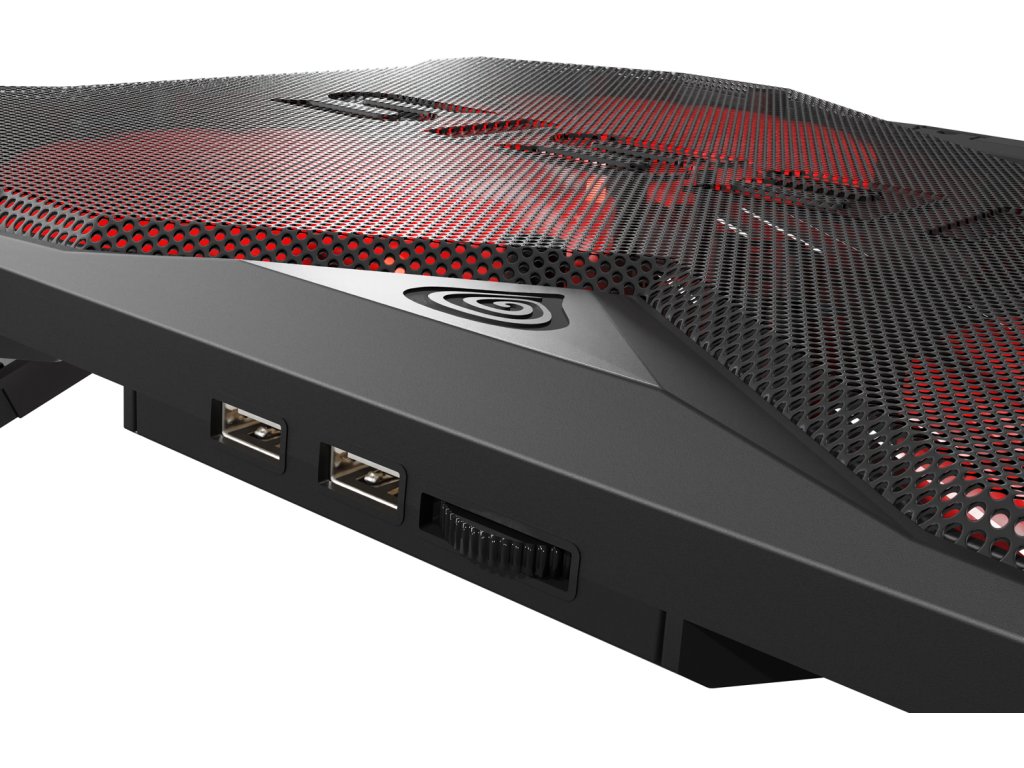 Chladicí podložka Genesis Oxid 260 je vybavena čtyřmi velkými ventilátory pro účinné chlazení. Jejich umístění zaručuje rovnoměrné chlazení notebooku a v závislosti na pracovním zatížení a teple, které zařízení generuje, můžete zvolit optimální rychlost ventilátorů.