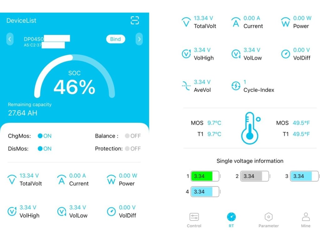 Všechna důležitá data o bateriích máte vždy na svém smartphonu nebo tabletu k dispozici. Aplikace zobrazuje data v reálném čase, když je váš smartphone připojen s baterií přes Bluetooth. Baterii je možné přes management vybalancovat, zkalibrovat, updatovat firmware, zkontrolovat statistiky, teplotu, napětí, zátěž a mnoho dalšího.