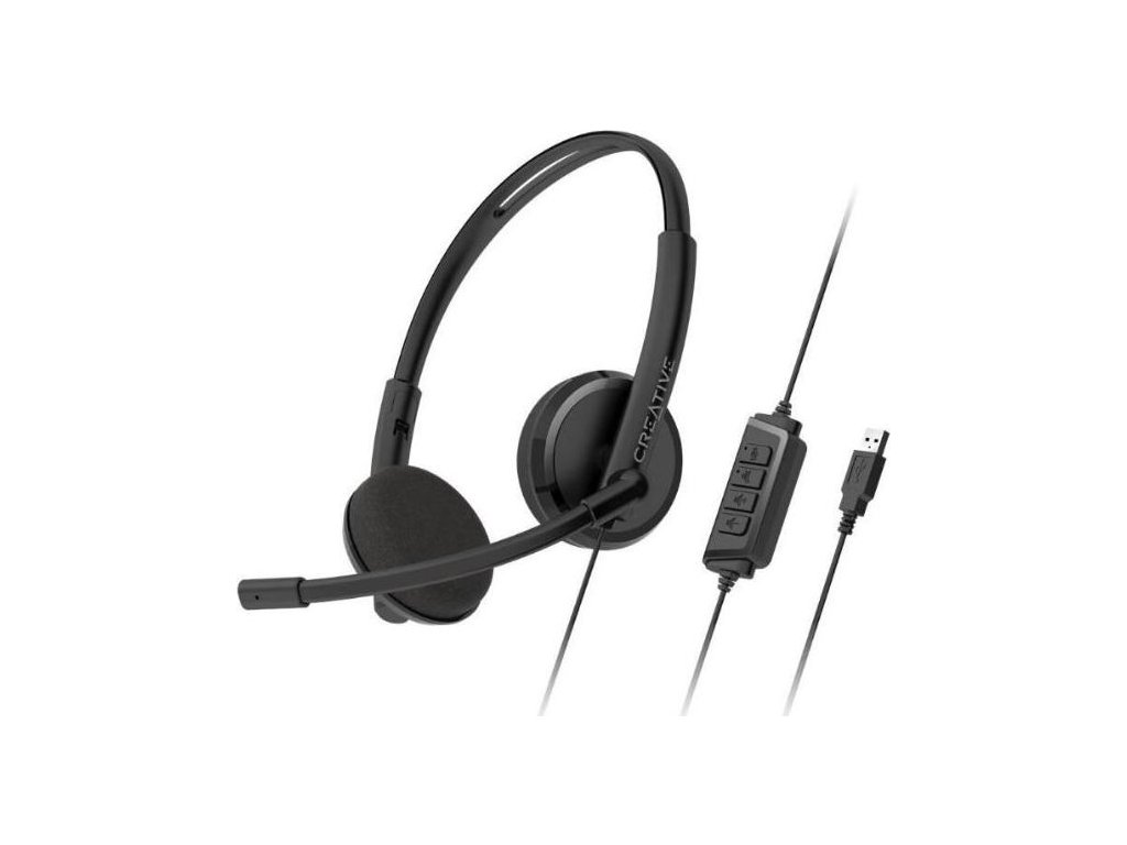 Sluchátka s mikrofonem pro online komunikaci s kondenzátorovým mikrofonem s funkcí potlačení hluku. 30 mm měniče s frekvenčním rozsahem 100 Hz až 20 kHz. Mikrofon s frekvenčním rozsahem 50 Hz až 15 kHz na ohebném ramínku. Ovládání na kabelu, ztlumení mikrofonu, rozhraní USB Type-A, hmotnost 108 g, kabel 2.4 m.