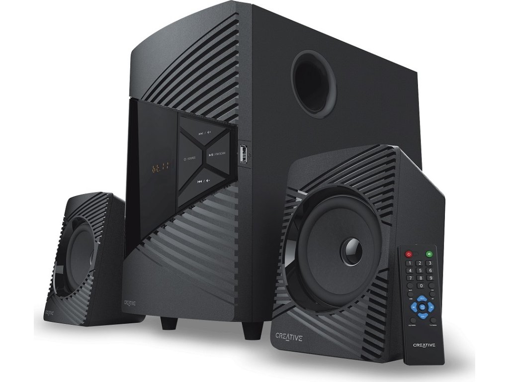 Creative SBS E2500 je vysoce výkonná reproduktorová soustava 2.1, která umožňuje poslech bohatého a výrazného zvuku prostřednictvím široké škály možností připojení. Streamujte bezdrátově přes připojení Bluetooth, poslouchejte oblíbené rozhlasové kanály v pásmu FM nebo přehrávejte přímo z libovolného zařízení USB! Kabelové připojení umožňuje 3,5 mm zdířka vstupu AUX. Nastavení přehrávání hudby a zvuku je pohodlně přístupné přímo na reproduktorech a různé předvolby ekvalizéru na bezdrátovém infračerveném ovladači, který je standardně ve výbavě.