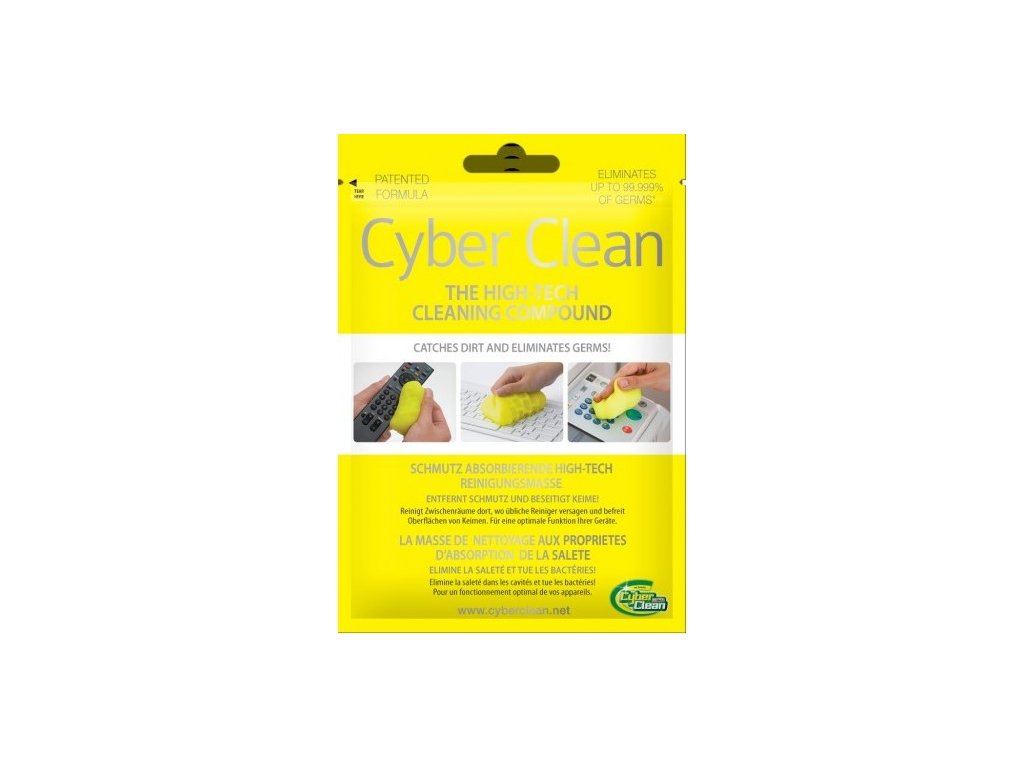 Cyber Clean je opravdová revoluce v péči o vaši techniku. Cyber Clean posouvá hranice fyziky. Tam, kam se běžně dostupné čistící prostředky nedostanou, tam hravě pronikne Cyber Clean. Kombinace elastické hmoty a patentovaná receptura absorbuje z povrchů a štěrbin špínu, prach a hubí bakterie. Má dezinfekční účinek.