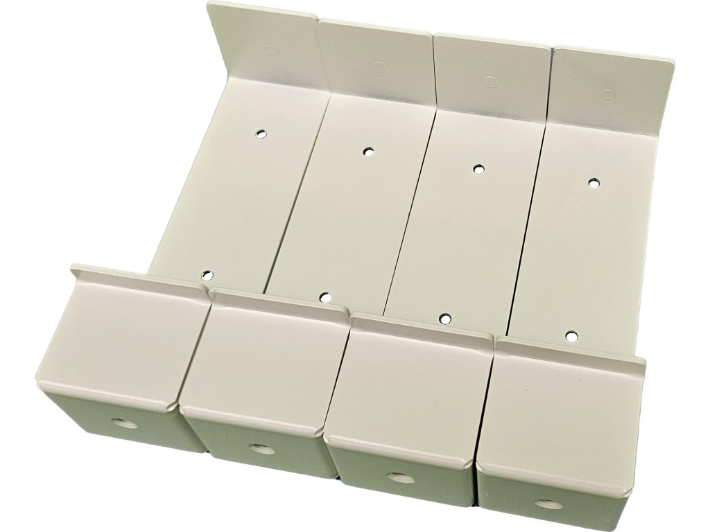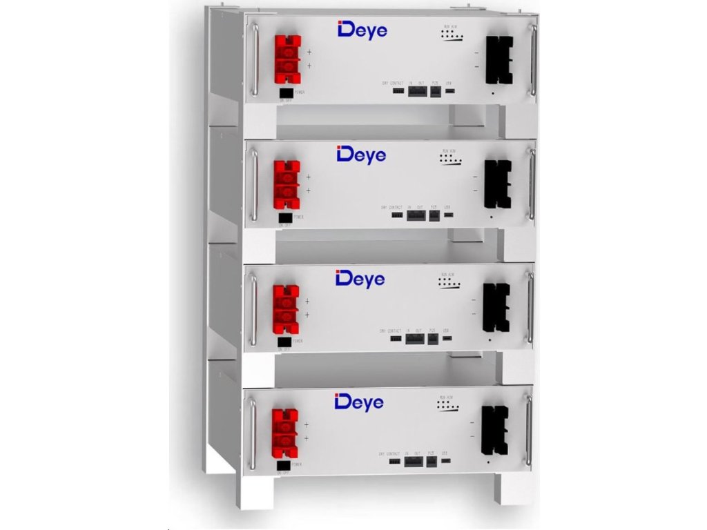 Čtveřice plechových stohovacích nožiček slouží pro uložení až čtyř Deye baterií do stacku (LV - nízkonapěťových), neboli na sebe, s výškou 3U na jedné sadě a při maximální výšce baterie 133 mm. Nožičky je nutné k baterii uchytit vždy dvěma přiloženými šrouby z boku. Nožičky mají z vrchní strany čep, který zajistí, aby baterie nemohla sklouznout ze stacku dolů. Jedna sada je určená pouze pro jednu baterii a obsahuje 4 nožičky.