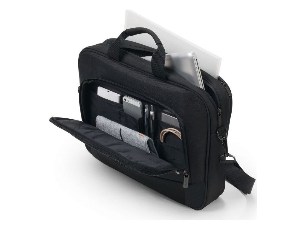 Lehké pouzdro na notebook s ochranným polstrováním a inteligentním úložným prostorem. Kompaktní pouzdro Eco Traveler BASE nabízí ideální ochranu notebooků mezi 13 a 14,1" díky polstrování z pěny s vysokou hustotou (HDF). Pouzdro zaručuje mimořádnou stabilitu a ochranu díky kovovému rámu a flexibilní pohyblivosti díky svému lehkému designu. Je zde další přihrádka, do které můžete snadno ukládat dokumenty. Váš smartphone nebo jiné menší předměty, jako jsou kabely, pera nebo nabíječky, lze uložit do praktické přední kapsy, takže jsou vždy po ruce. Pouzdro se pohodlně nosí díky jeho neoprenovému polstrovanému držadlu a díky integrovanému popruhu jej lze během několika sekund připevnit ke kufru. Pouzdro můžete nosit také pomocí nastavitelného ramenního popruhu. Eco Traveler BASE je proto pro vás ideální, pokud jste stále na cestách a chcete podpořit recyklaci PET lahví ekologickým pouzdrem.