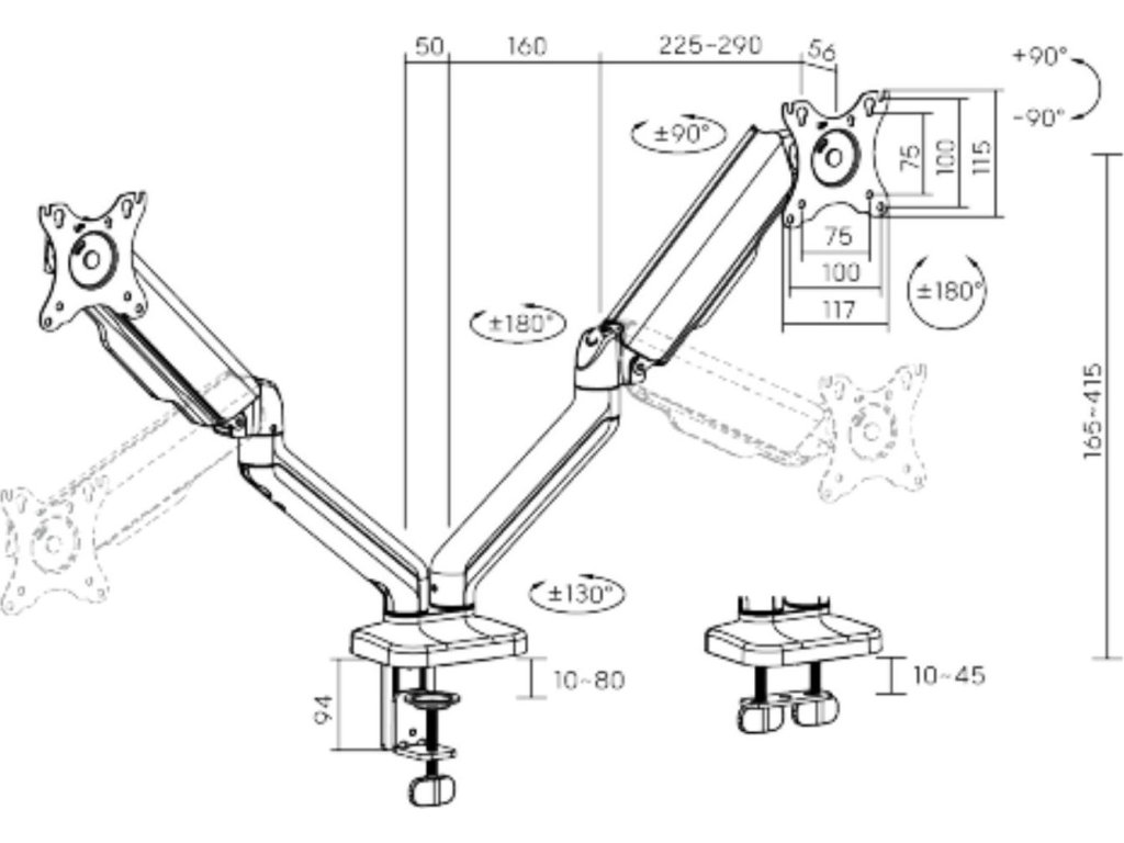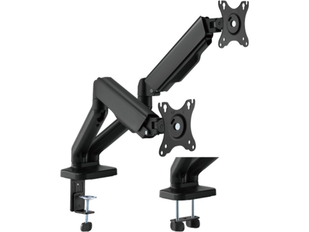 Díky odolné ocelové konstrukci poskytuje stabilní podporu pro dva monitory s úhlopříčkou 17" až 32" a hmotností až 9 kg na rameno. Flexibilní konstrukce pro dostatečné nastavení výšky a pozorovacích úhlů s možností nastavení orientace monitoru na výšku nebo na šířku. Součástí balení jsou průchodky a svorky pro instalaci na téměř jakoukoliv pracovní plochu. Odnímatelná deska VESA pro uživatelsky přívětivou instalaci.