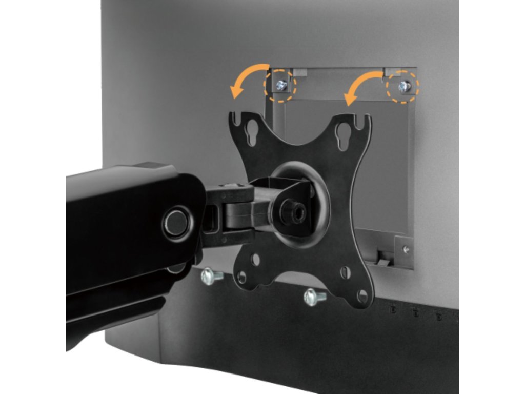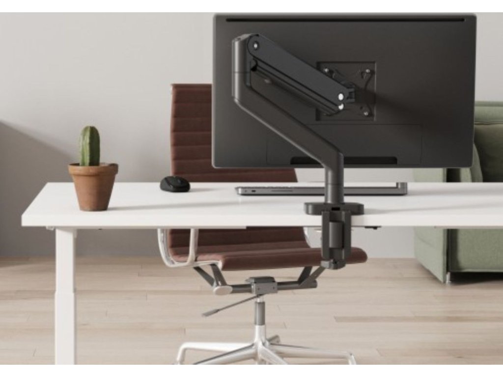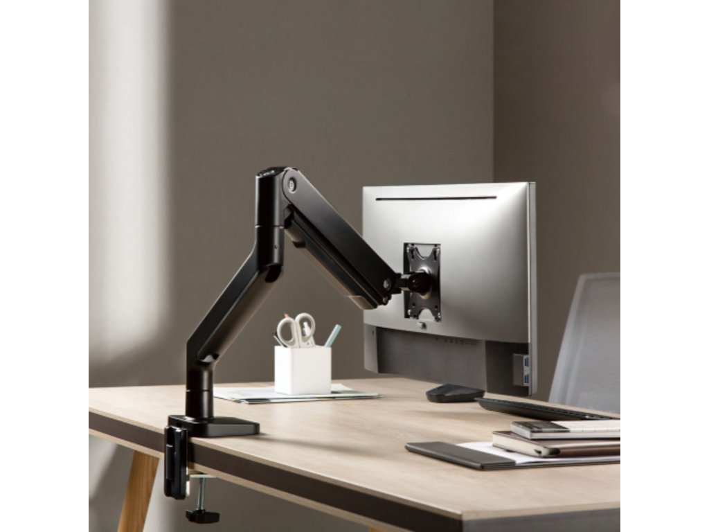 Díky odolné ocelové konstrukci poskytuje stabilní podporu pro jeden monitor s úhlopříčkou 17" až 45" a hmotností až 16 kg u normálního monitoru a 13 kg u prohnutého monitoru. Flexibilní konstrukce pro dostatečné nastavení výšky a pozorovacích úhlů s možností nastavení orientace monitoru na výšku nebo na šířku. Součástí balení jsou průchodky a svorky pro instalaci na téměř jakoukoliv pracovní plochu. Odnímatelná deska VESA pro uživatelsky přívětivou instalaci.