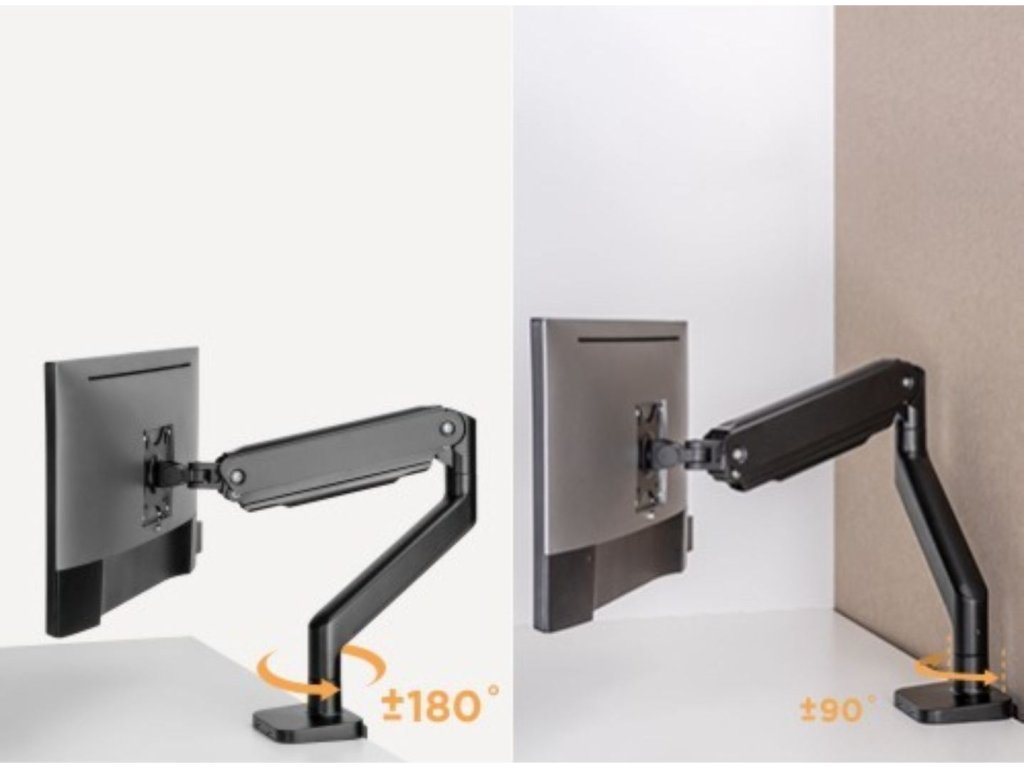 • Flexibilní nastavení polohy: Držák umožňuje snadné nastavení výšky, nastavitelný náklon monitoru v úhlu +/- 90°, vychýlení do stran o 180° a otočení monitoru o 360°, takže můžete snadno najít optimální pozici pro pohodlné a ergonomické používání. Odnímatelná deska VESA umožňuje snadnou instalaci monitoru.