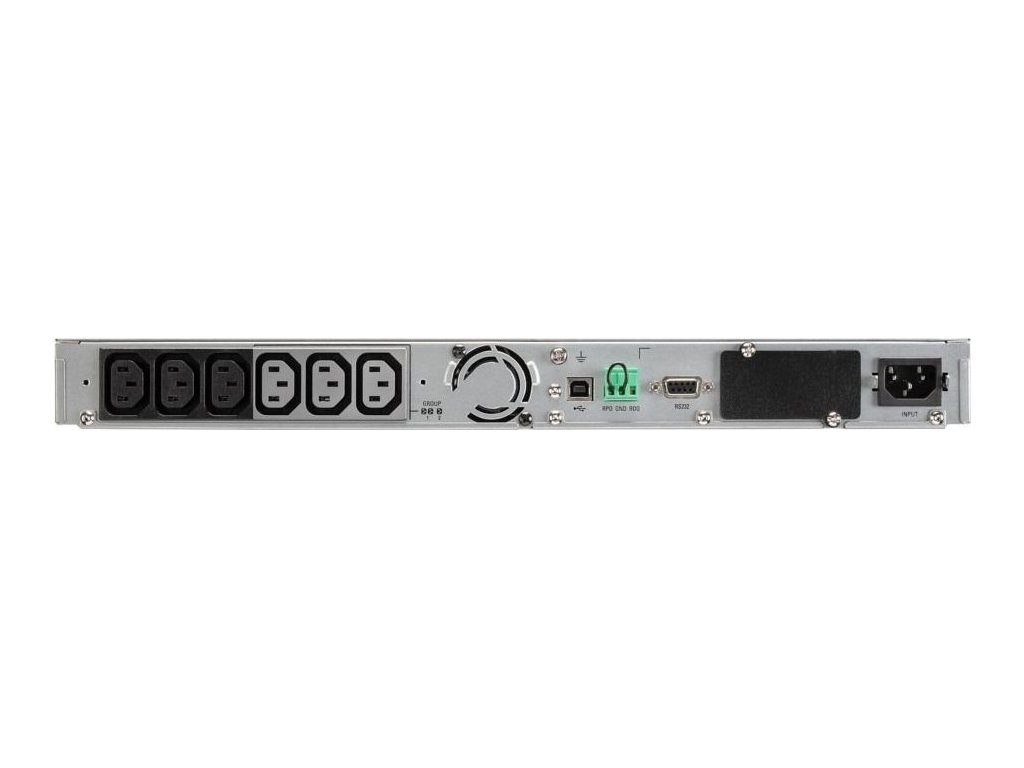 Komunikační porty: 1× USB-B, 1× RS-232, 1× minisvorkovnice pro dálkové zapnutí/vypnutí a pro dálkové odstavení, 1× RJ-45, 1× USB