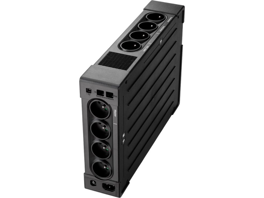 Eaton Ellipse PRO 1200 FREaton Ellipse PRO je UPS kombinovaná s ochranou proti přepětí, která nabízí ochranu osmi zařízení ve standardních zásuvkách, ale i Ethernetové datové sítě nebo telefoní linky. LCD displej poskytuje jasné informace o stavu a měřených hodnotách. Umožňuje také snadné nastavení. Vybavena je USB portem a software pro správu napájení. Extra plochý design umožňuje snadnou instalaci do každého kancelářského prostředí. UPS lze nainstalovat ve vertikální poloze pod stolem nebo vodorovně pod monitor. Výkonná baterie poskytne až 9 minut k zálohování při 50% zatížení. Funkce EcoControl, která automaticky vypne připojená zařízení v případě, že hlavní zařízení je vypnuté, může snížit spotřebu energie až o 20 %.