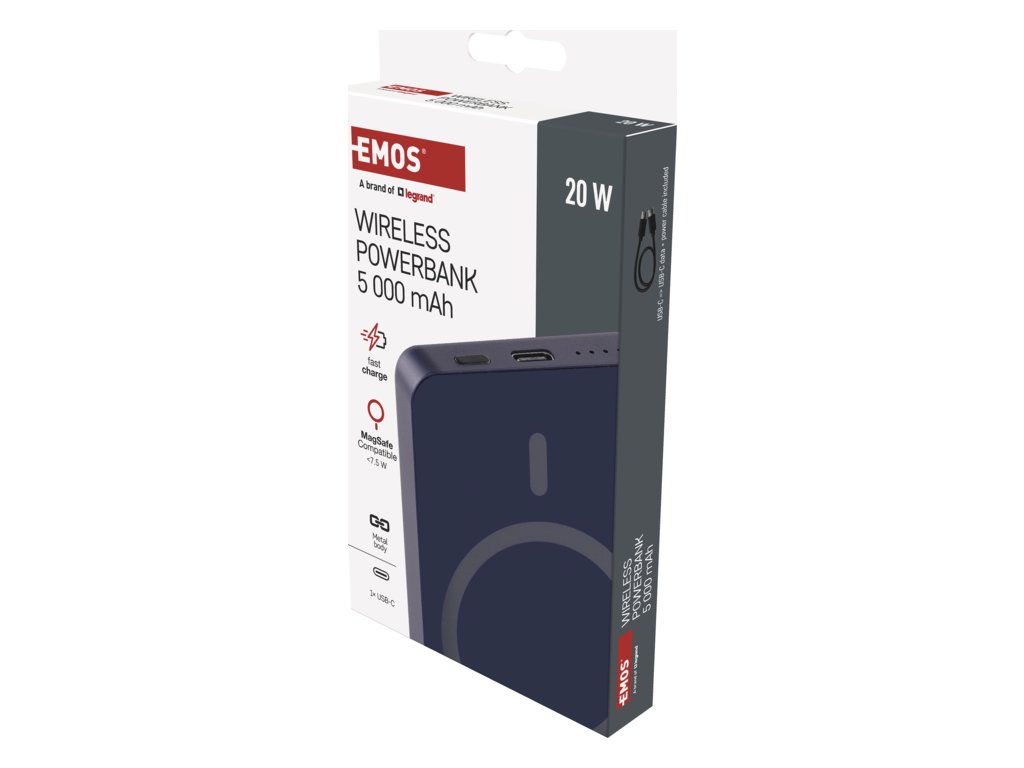 EMOS POWERBANKA WI 522, bezdrátové nabíjení 20W, 5.000mAh, MODRÁ, 1xUSB-C