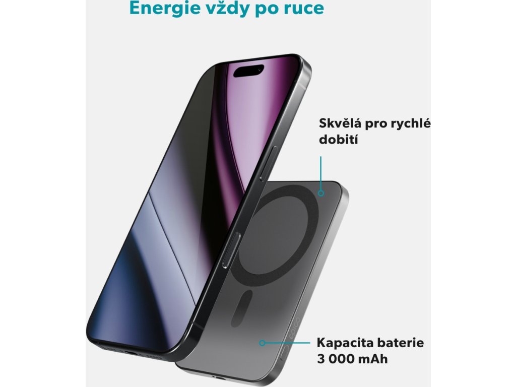 Kapacita 3 000 mAh: Poskytuje spolehlivé záložní nabíjení, dostatečné pro dobití iPhonu 16 Pro až na 50 %.*