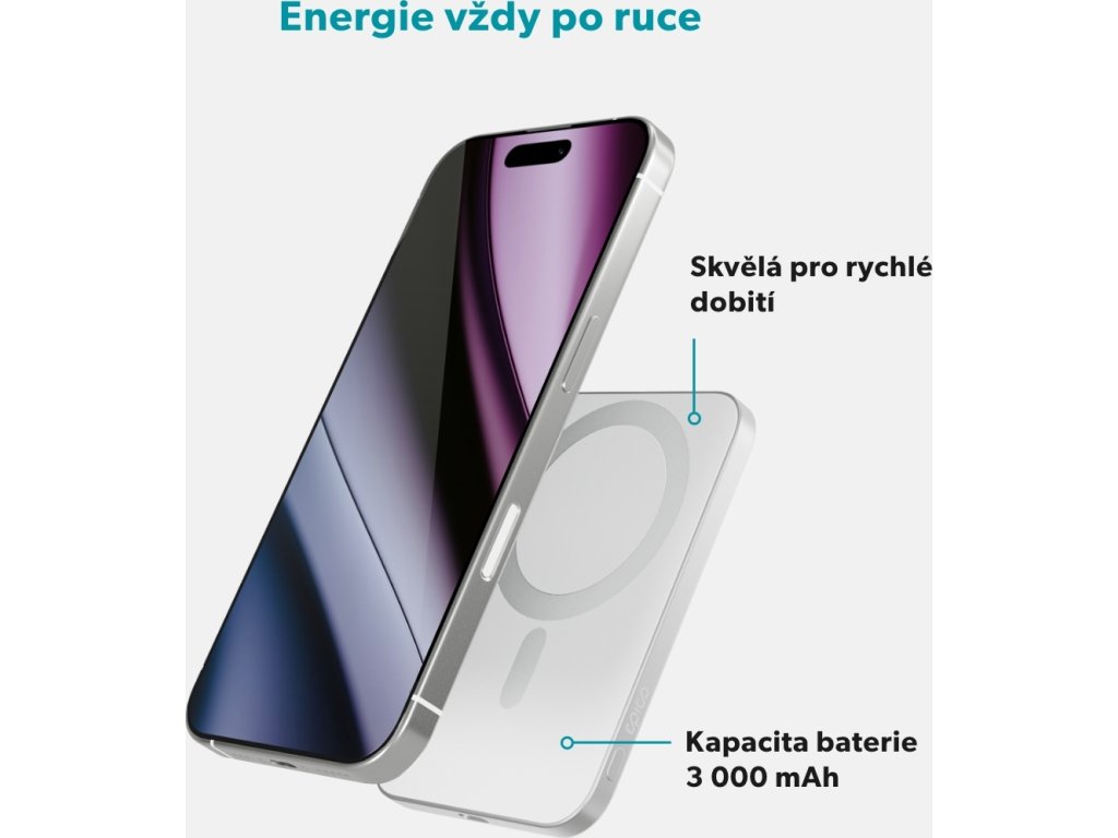 Kapacita 3 000 mAh: Poskytuje spolehlivé záložní nabíjení, dostatečné pro dobití iPhonu 16 Pro až na 50 %.*