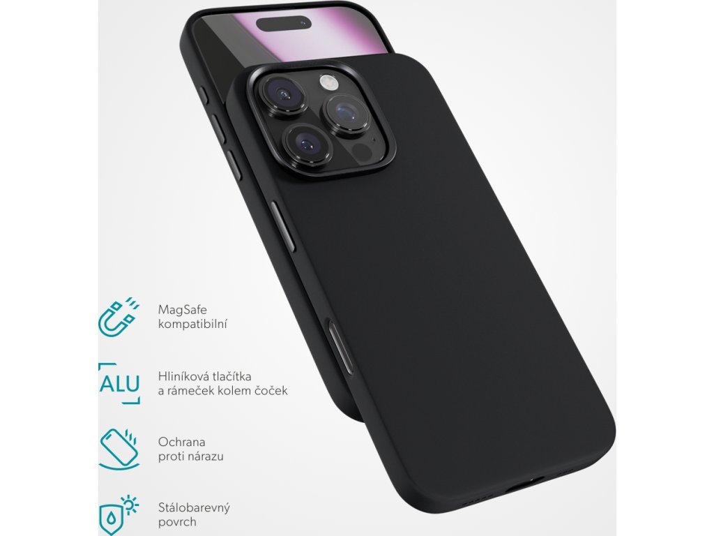 Kryt na telefon, pro Apple iPhone 16 Pro Max, kompatibilní s MagSafe, materiál silikon, hliníková tlačítka, hliníkový rámeček kolem objektivů.