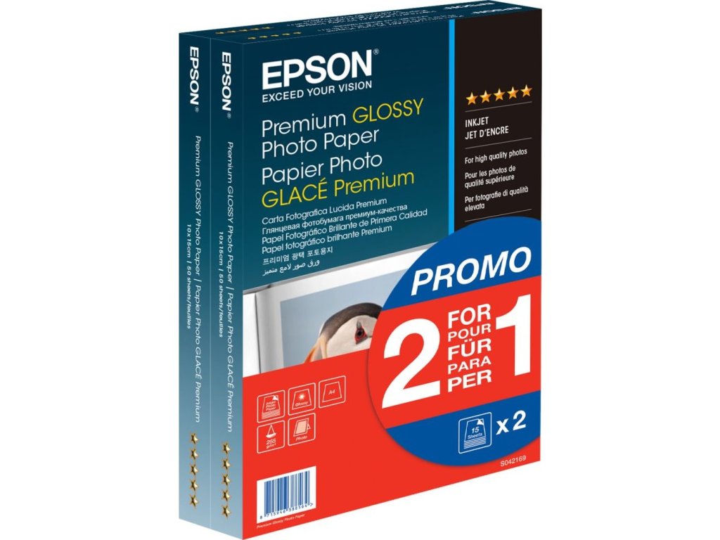 Epson Premium Glossy 10 x 15 cmFotopapír vhodný pro uživatele s vysokými nároky na kvalitu a profesionální použití. Fotopapír Epson se svou gramáží 255 g/m2 a lesklým povrchem nabízí dlouhou životnost výtisků, ten nejlepší výkon a kvalitní stálost barev.