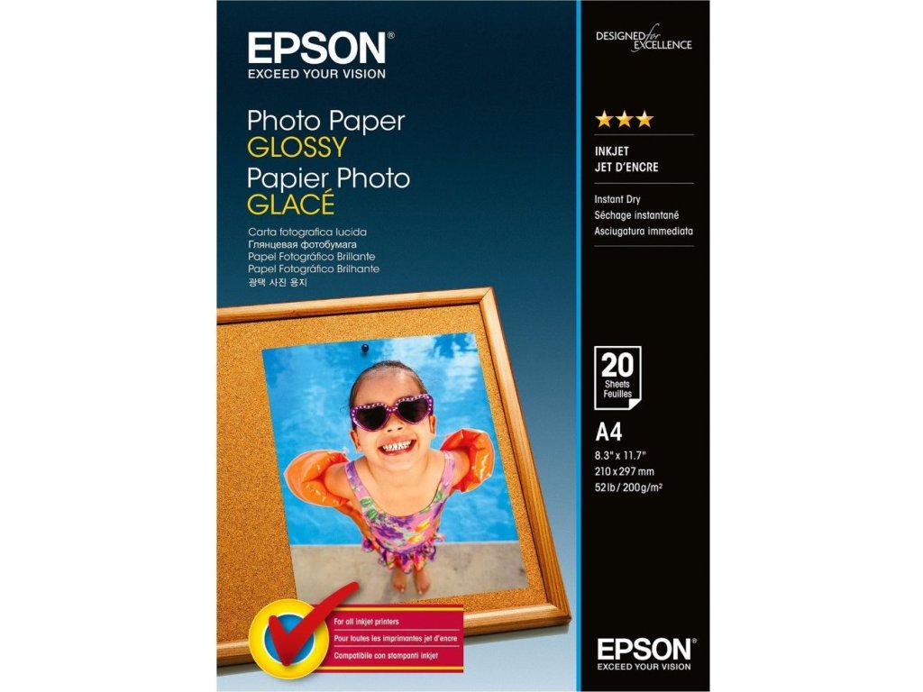 Photo Paper Glossy rozšiřuje naši stávající nabídku fotografických papírů Epson a je vhodný pro všechny typy inkoustových tiskáren. Tento papír byl navržen pro celou rodinu a nabízí skvělou užitnou hodnotu a snadné používání. Photo Paper Glossy má hmotnost 200 g/m2 a dodává se ve čtyřech různých velikostech. Každé balení obsahuje 20, 50 nebo 100 listů.