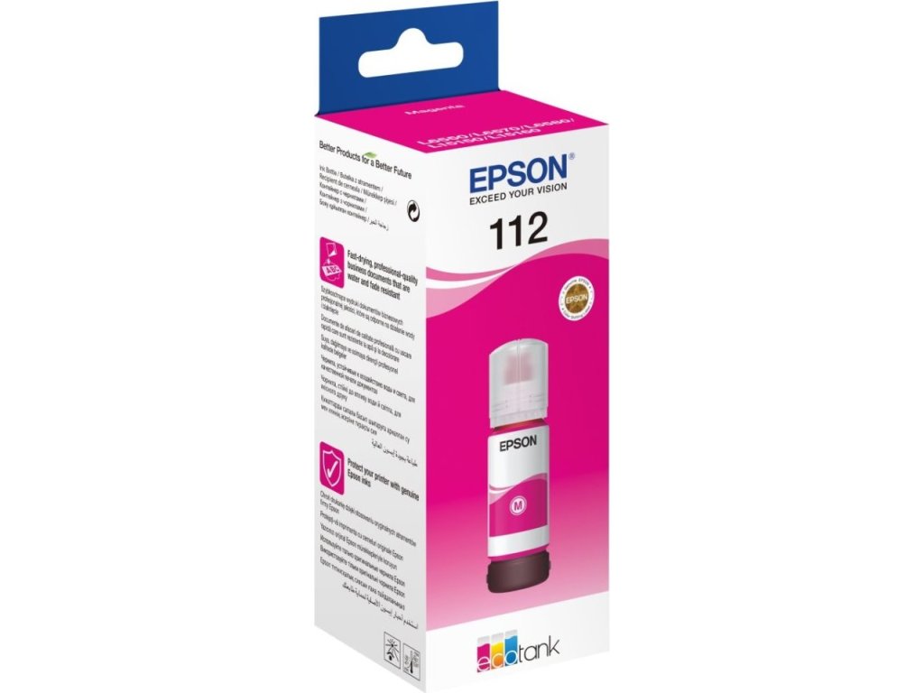 Řada rychleschnoucích inkoustů EcoTank 112 obsahuje pigmentové inkousty pro výtisky odolné vůči rozmazání a zvýrazňovačům. Tento spolehlivý a vysoce kvalitní inkoust vám zaručí dokonalé výtisky se skvěle čitelným textem a zářivými barvami. S jedinou sadou inkoustů můžete vytisknout tisíce stran, aniž byste museli měnit zásobník.