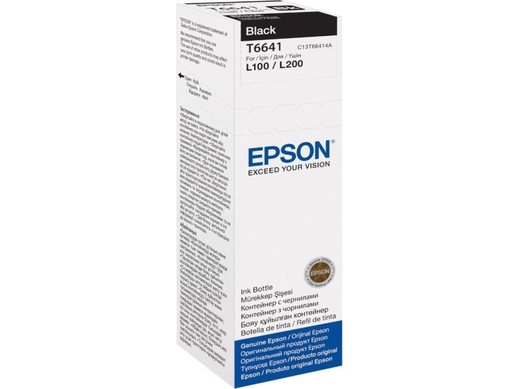 Epson C13T66414A je originální balení černé barvy s obsahem 70 ml pro tiskárny řady Epson L100/110/200/210/300/335/455/550.