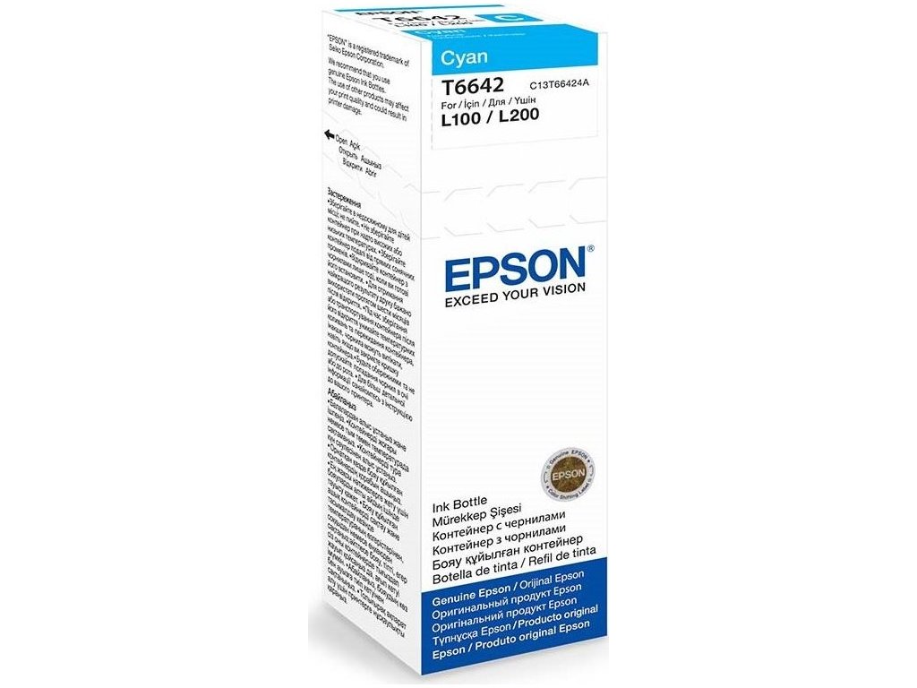 Epson C13T66424A je originální balení modré barvy s obsahem 70 ml pro tiskárny řady Epson L100/110/200/210/300/335/455/550.