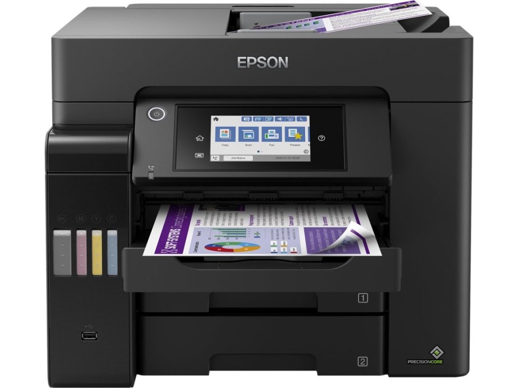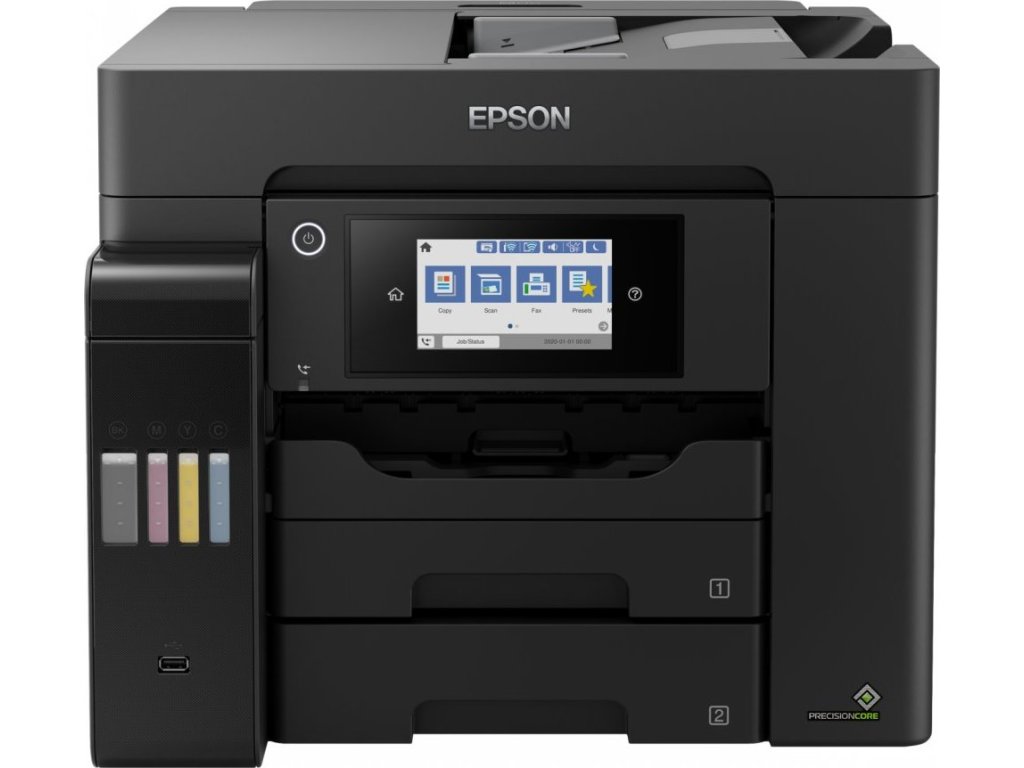 S touto snadno použitelnou tiskárnou EcoTank můžete tisknout, skenovat, kopírovat a faxovat dokumenty při opravdu výjimečně nízkých nákladech na jednu stránku. Veškeré úlohy lze zvládat rychle díky vysoké rychlosti tisku a skenování, dvěma předním zásobníkům na 250 listů, zadnímu podavači na 50 listů a automatickému podavači dokumentů o kapacitě 50 listů. Díky funkcím mobilního tisku, Ethernet připojení a dotykovému LCD displeji s úhlopříčkou 10,9 cm můžete tisknout tak, jak právě potřebujete.