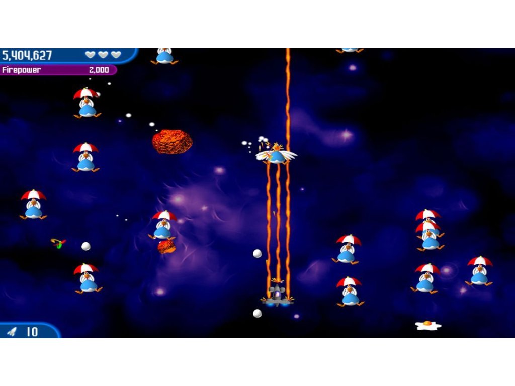 Právě když jste si mysleli, že je bezpečné znovu jíst kuře, kuřata se vrátila sorganizovanou invazí, aby ovládla celousluneční soustavu! Vydejte se na každouplanetu a probojujte se, abyste zachránili svět (opět)!