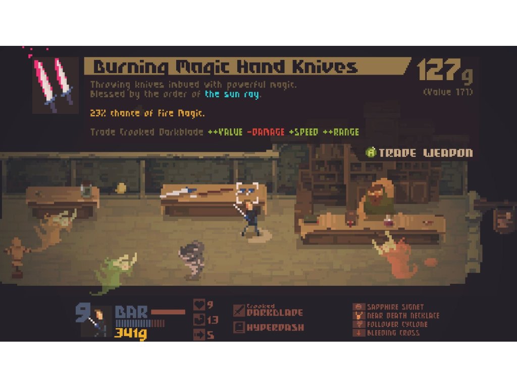 Multiplayerová lokální akční dungeonovkav retro stylu, kde ostatní hráči mají možnost hrát monstra útočící na hlavníhohrdinu. Pokud nemáte přátele na blízku,nevadí, krvelačných bestií se zmocní umělá inteligence počítače.