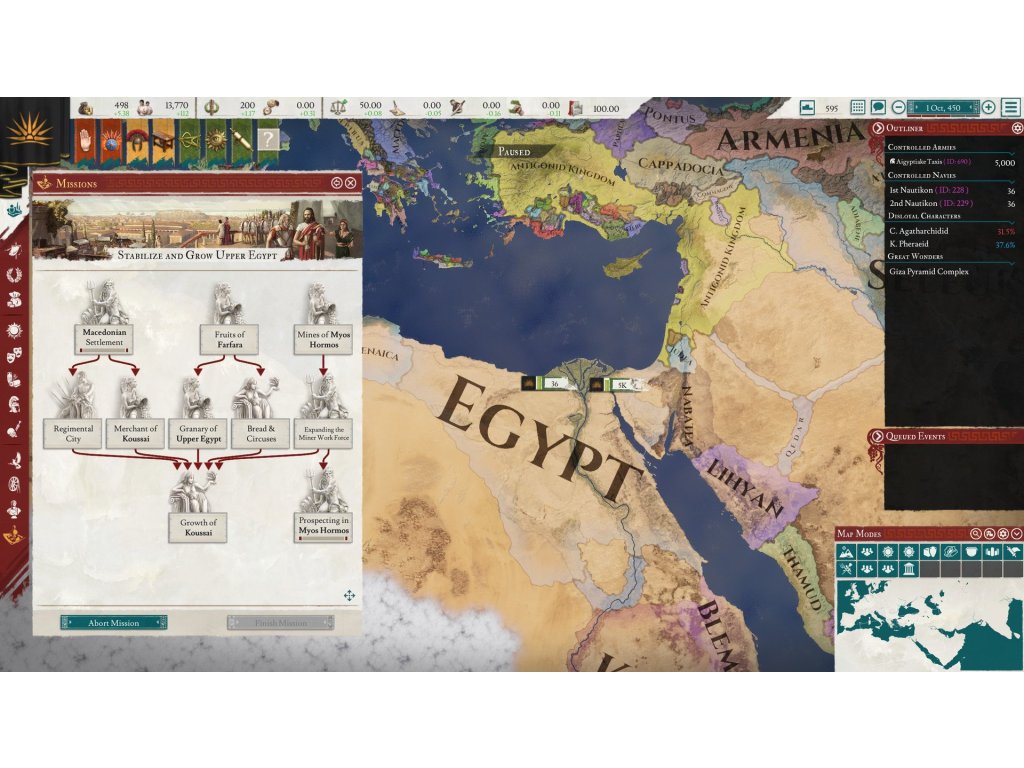 • Unikátní stromy misí - Nové speciálnícíle mise pro Antigonidskou říši v Anatolii, Seleukovskou říši v Asii, Ptolemaiovskou říši v Egyptě, Makedonii a Thrákii.