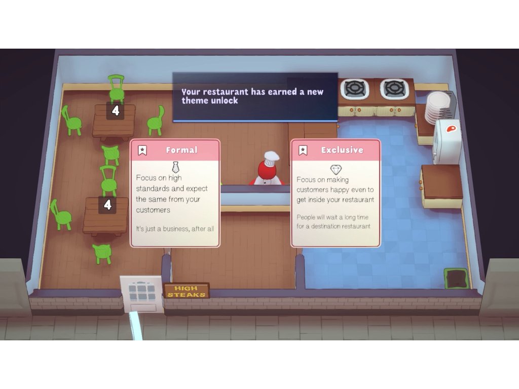 Hráči mají volnou ruku při navrhování své restaurace, která se bude mezi směnamirozšiřovat a rozvíjet - s dalším obsahem a výzvami, které se odemykají díky postupu.