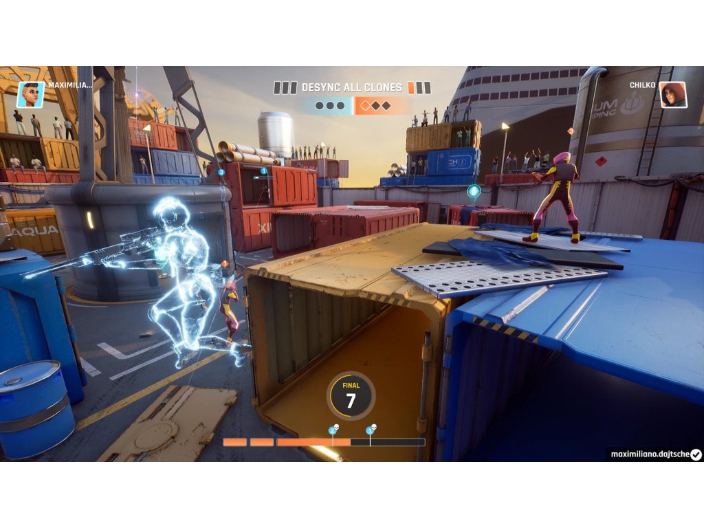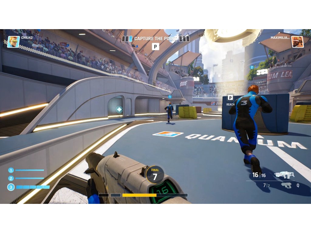 Jako Quantum Athlete soutěžíte v zápasech 1v1 a 2v2 ve speciálně navržených arénách s funkcí časové smyčky, která vás přetočí a oživí, což vám umožní takticky se spojit sami se sebou. Vaším cílem je ovládnout žebříček sportu a honit statussuperstar s odměnami velké slávy a bohatství, jak budete postupovat. Ale hbitost, rychlost a dovednosti nestačí k tomu,aby se dostali na vrchol. Důležitá je také schopnost takticky hrát sám se sebou!