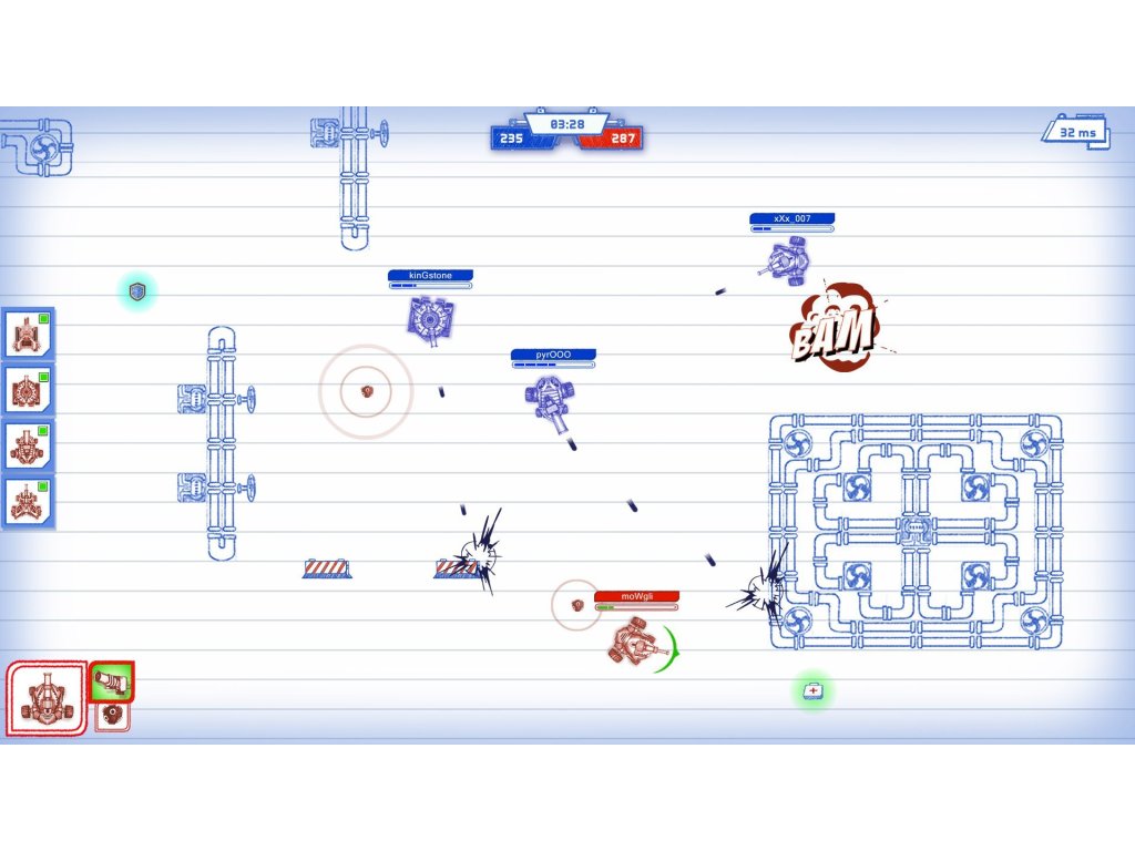 Scribbled Arena přináší retro tankové bitvy arkád v ručně kresleném a rychle sepohybujícím avataru. Tankové bitvy nikdynebyly tak rychlé. V Scribbled Arena budou hráči bojovat s arénním stylem se všemi druhy chaotických projektilů, kterélétají vzduchem.