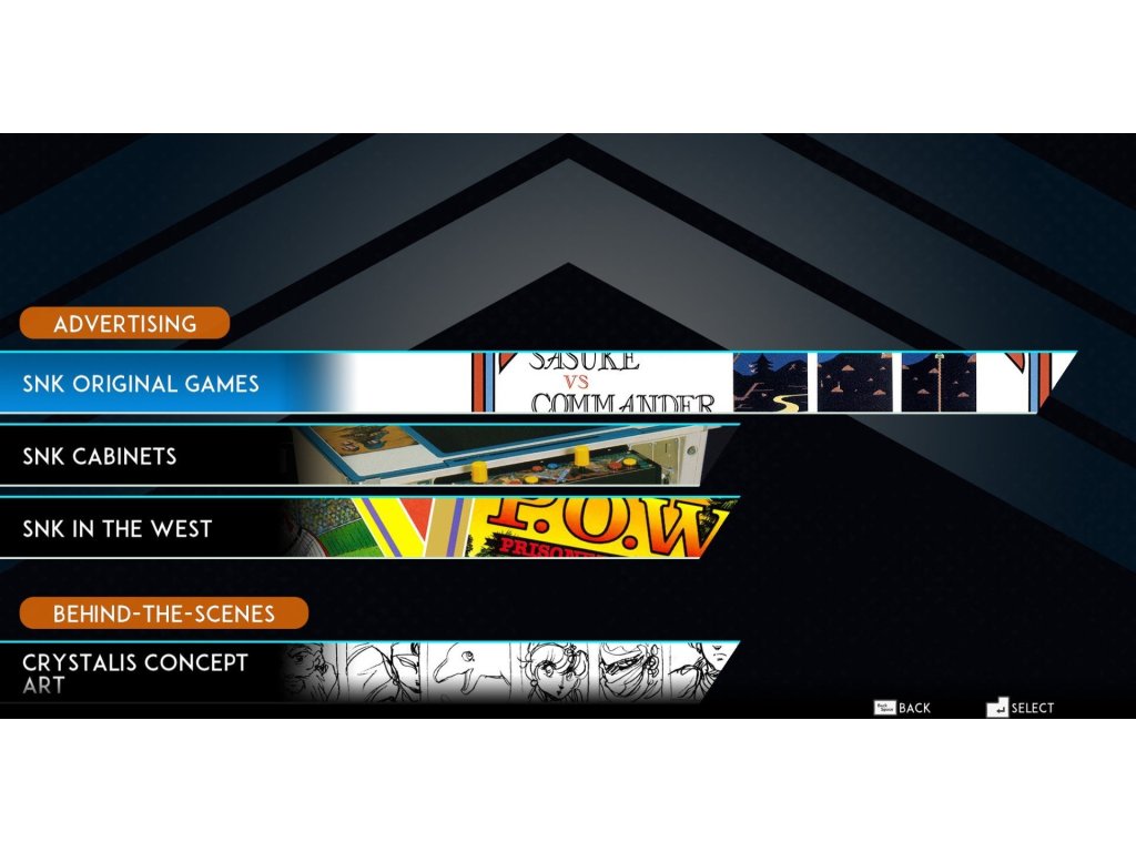 Kolekce herní klasiky na vlastní kůži! –Kamkoli vyrazíte, máte kousek dějin SNKna Nintendo Switch s sebou. Vyberte siz více než tuctu retro vypalovaček! Setkání nových technologií s retro – V kolekci nechybí pohodlí a inovace moderního hraní! Přetočte a uložte si hru kdykoli během hraní, vychutnejte si vylepšenou grafiku v 1080p rozlišení a užijte si přebudované ovládání hry pro moderní pocit!Vstup do muzea SNK – Bohatá historie SNKčeká v Módu Muzea. Seznamte se s odkazem jednoho z nejslavnějších japonských herních developerů s HD artworky a originálními propagačními materiály!