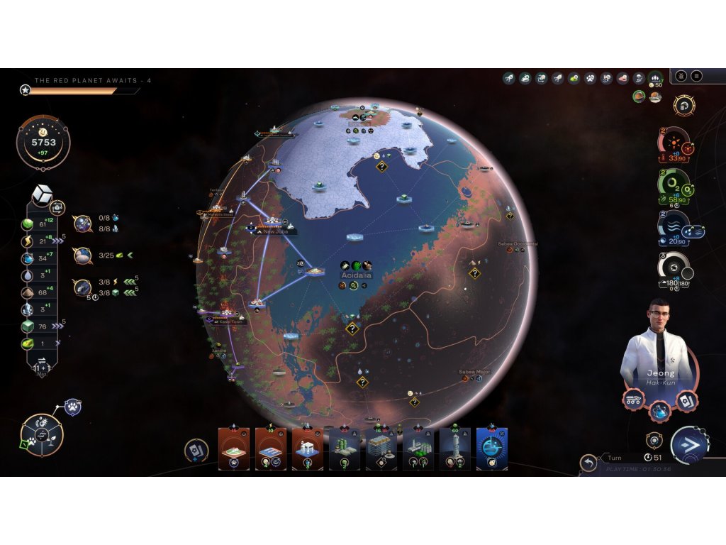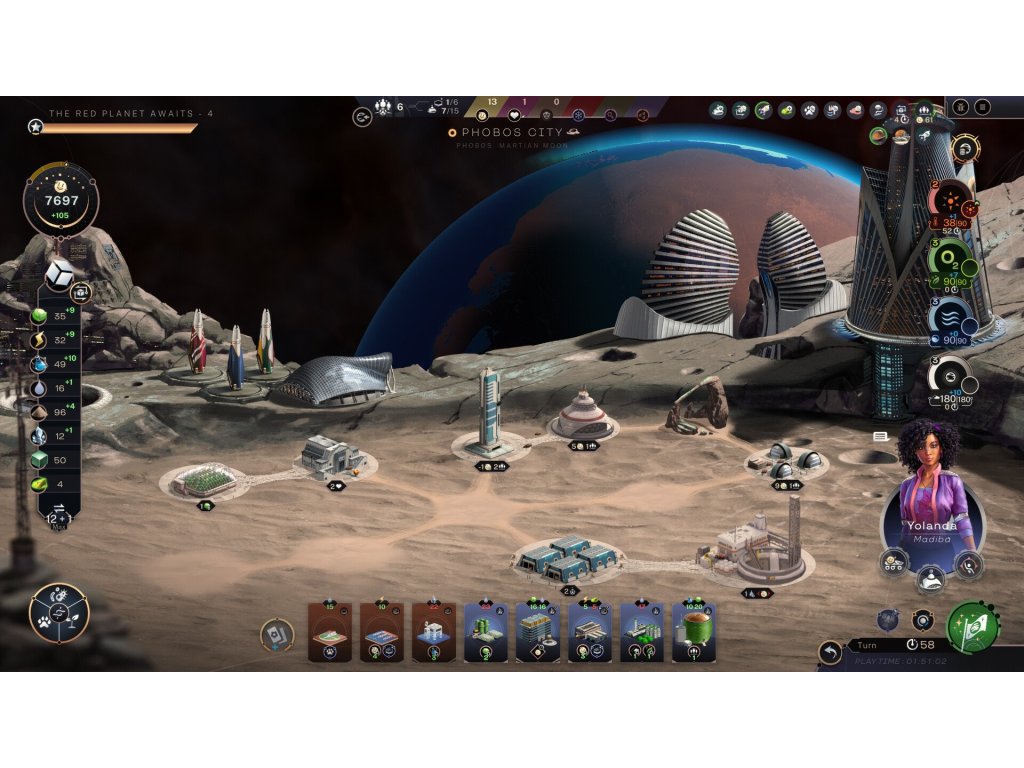 Zakládejte nová města na kráterech. Postarejte se o jejich rozkvět a uspokojte rostoucí nároky své populace.
