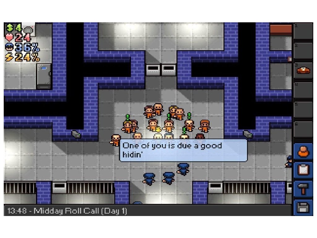 The Escapists nabízí příležitost nahlédnout do všedního života kriminálníka, jehož hlavním úkolem je, jak už to tak u vězňů bývá, utéct z vězení. Hra The Escapists nabízí příležitost nahlédnout do všedního života kriminálníka, jehož hlavnímúkolem je, jak už to tak u vězňů bývá,utéct z vězení. Hráči musí pod bedlivýmdohledem stráží plnit své každodenní povinnosti a zároveň nepozorovaně krást hodící se předměty. Potenciální uprchlíci se dozví, jak ze zdánlivě neškodných předmětů vytvořit užitečné nástroje nebo dokonce zbraně, a také jak je využít při plánování útěku. Hráči se musejí naučit, kdy se držet v řadě, a také smysluplně využívat svůj čas během plánování svého útěku. Sledování denní rutiny ve vězení ahledání příležitostí patří k životu za mřížemi. Plánování potenciálních cest anebo dokonce odlákání stráží se brzy stanou součástí vaší nátury. Během všech těchnesčetných prezencí, své práce a interakce se spoluvězni mohou hráči také těžitz vylepšování statistik postavy a to tak, že zapracují na svém intelektu a fyzičce. Pokuste se vyvážit denní rutinu s pečlivým plánováním ultimátního cíle – útěku na svobodu. STÁVAJÍCÍ PRVKY: 8 zcelafunkčních věznic a to včetně denní rutiny, která vám dá okusit, jaké je to být„opravdovým“ vězněm. 10 příležitostí k zaměstnání, do kterých se můžete pustit –pokud se chcete učit a vydržet u toho!Více než 185 unikátních předmětů ve hře,ze kterých můžete vytvářet užitečné nástroje (Team17 plně podporuje používání rozličných zbraní, jako jsou nože, nunčaky a palcáty – samozřejmě jenom ve hře).Různé službičky nabízené spoluvězni – přece byste si je nechtěli naštvat, že ne?Velmi umínění a neuvěřitelně zábavní spoluvězni a stráže, kolem nichž se budeteplížit po špičkách a kteří se vám postarají o zábavu. Několik únikových cest, které si můžete naplánovat, a tak získattitul uprchlíka. Několik možností uložení pozice, díky nimž máte více než jedenpokus.