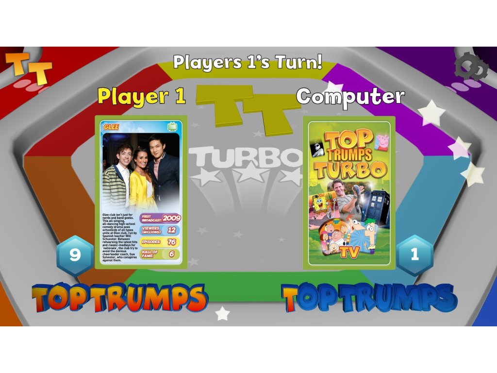 Top Trumps Turbo je zbrusu nová, exkluzivní zábavná a vzrušující karetní hra TopTrumps, kterou vám přináší Funbox Media. Použijte karty a své schopnosti, abyste porazili počítač a stali se špičkovýmšampiónem Top Trumps Turbo!