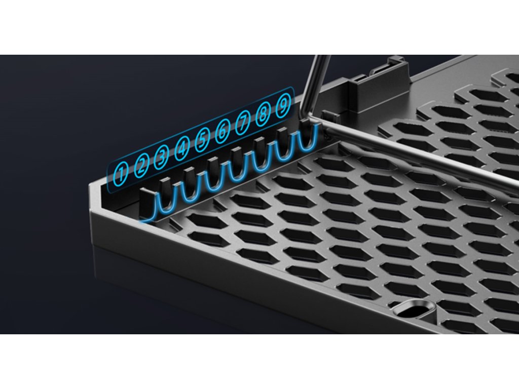 Chladicí podložka EVOLVEO Ania 9 RGB disponuje možností polohování. Je zde celkem 9 různých poloh, a to až do výše 210 mm. Každý uživatel si tak najde optimální polohu.