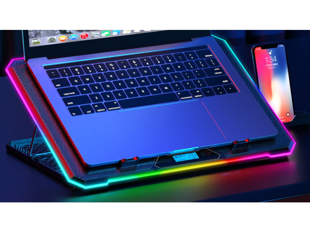 Chladicí podložku EVOLVEO Ania 9 RGB s RGB podsvícením využijete pro notebooky o velikosti 10-17". Bezesporu oceníte možnosti nastavení polohy a regulaci otáček ventilátoru. Pomocí tlačítek u displeje lze přepínat mezi třemi barevnými módy (modrá, zelená a červená) a čtyřmi RGB módy, které osvětlují okraj podložky. Podržením tlačítka pro ovládání barevných módů podobu delší 3s dojde k zapnutí/vypnutí LED na okraji podložky. Tlačítkem pro regulaci otáček lze navolit jednu ze 4 rychlostí ventilátorů a tyto pak zcela vypnout.