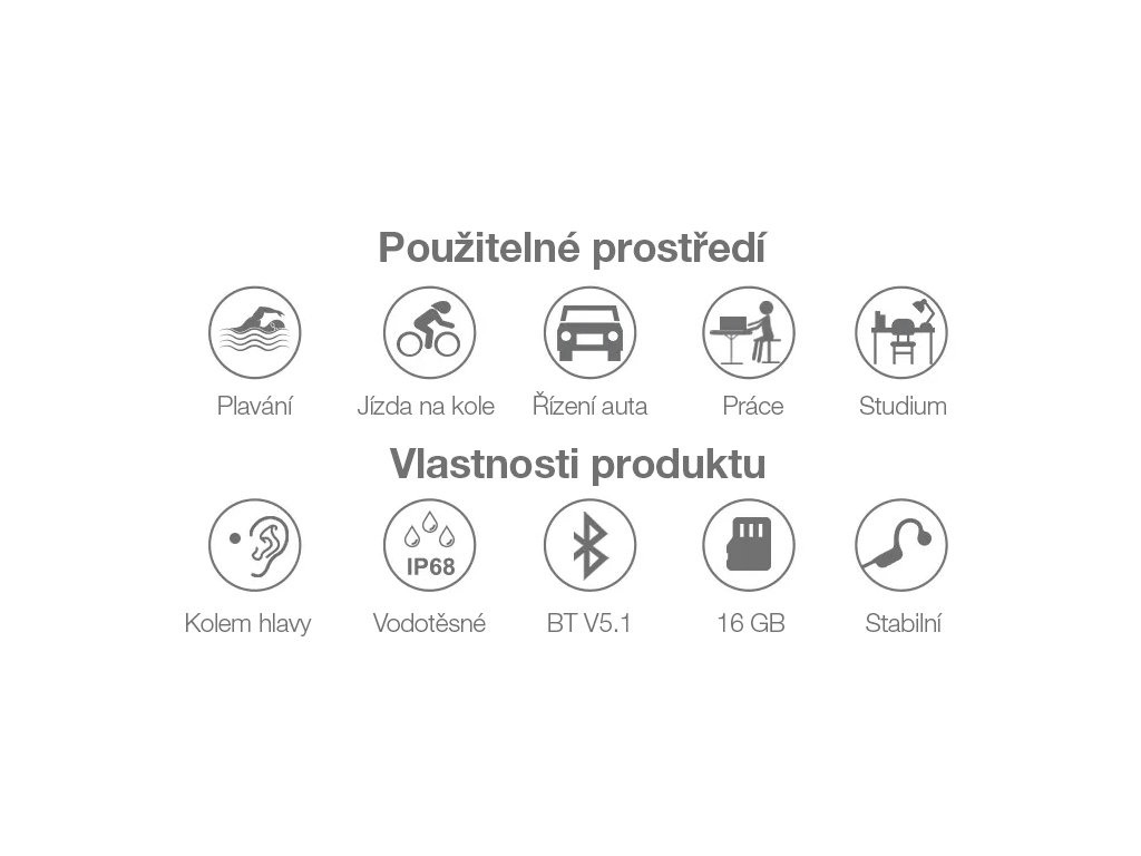 Originální a patentovaná technologie umožňující užívat si poslech hudby nejenom při plavání. Sluchátka jsou vhodné i pro běh a další sporty, protože díky otevřené konstrukci slyšíte okolní zvuk.