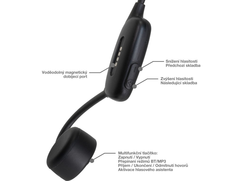 EVOLVEO BoneSwim Pro MP3 32GB, bezdrátová sluchátka na lícní kosti, černé