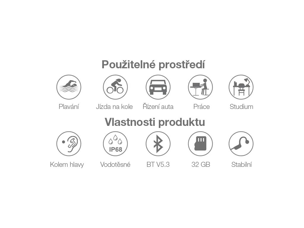 Sluchátka BoneSwim Pro přicházejí s technologií vedení zvuku přes lícní kosti, která umožňuje poslech hudby bez izolace od okolního prostředí. Jsou ideální pro různé aktivity, jako je plavání, běhání, nebo jízda na kole a poskytují skvělý zvukový zážitek.