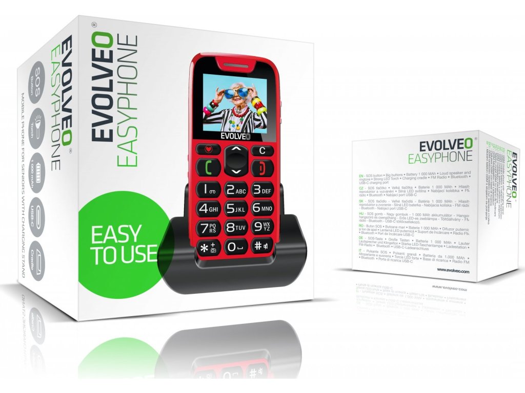• EVOLVEO EasyPhone, mobilní telefon pro seniory s nabíjecím stojánkem, červe (PartNo: EP-501-BK)