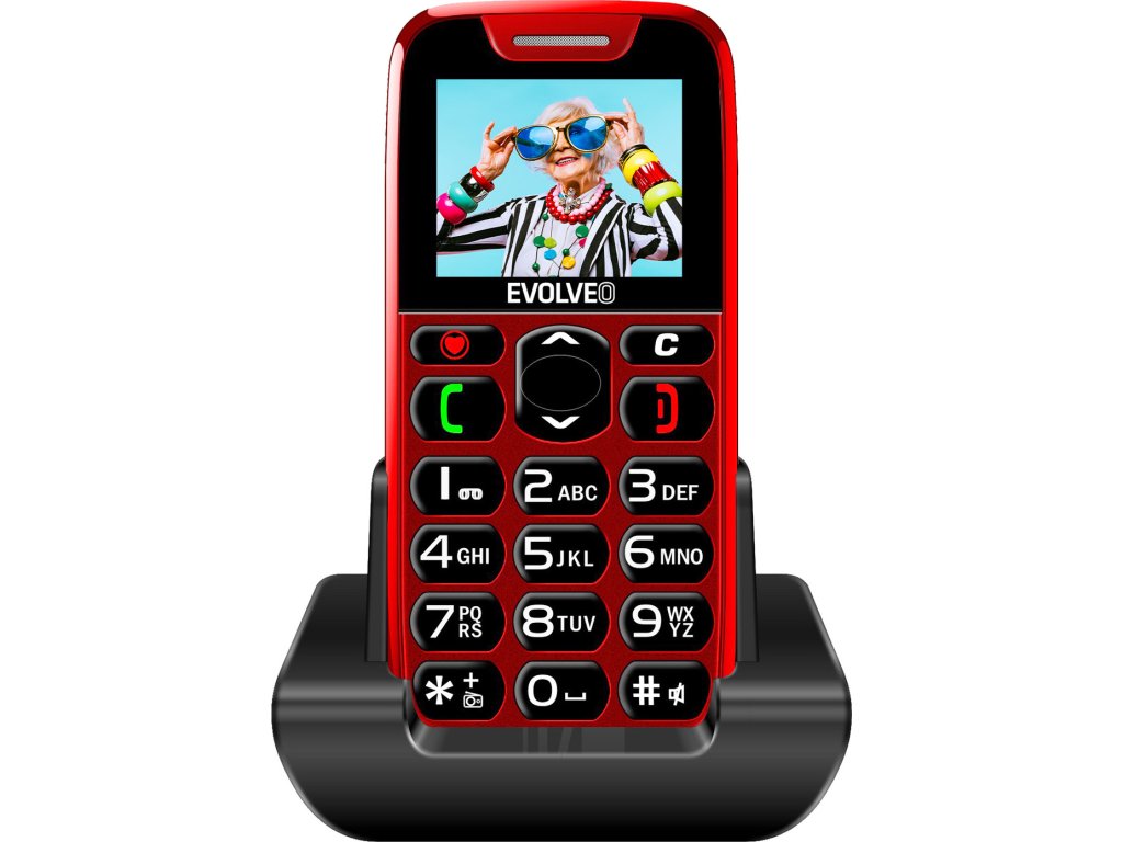 EVOLVEO EasyPhone, mobilní telefon pro seniory s nabíjecím stojánkem, červená