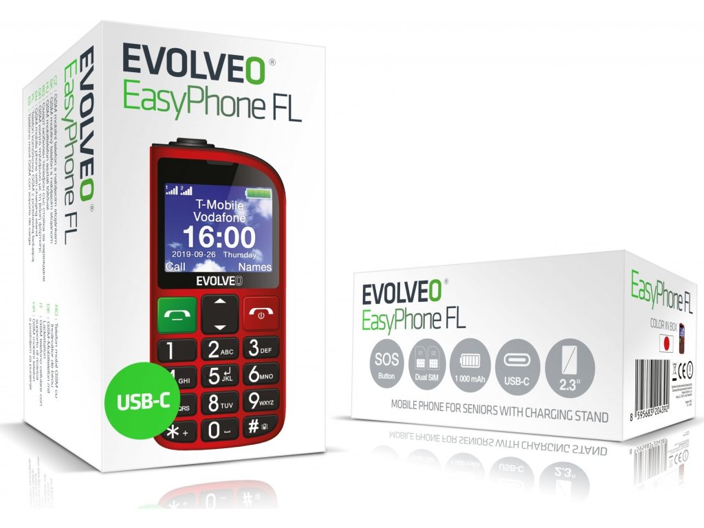 EVOLVEO EasyPhone FL, mobilní telefon pro seniory s nabíjecím stojánkem, červená