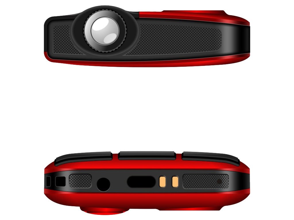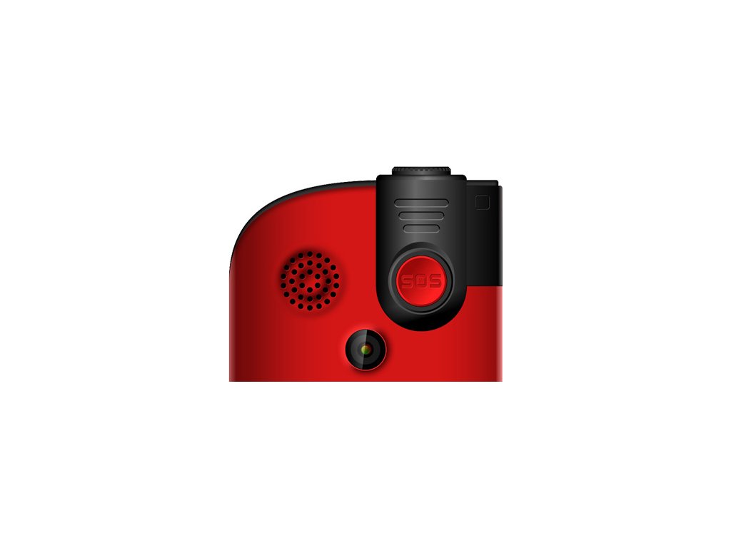 • SOS tlačítko s výrazným barevným odlišením na zadní straně pro nouzové volání a SMS zprávu